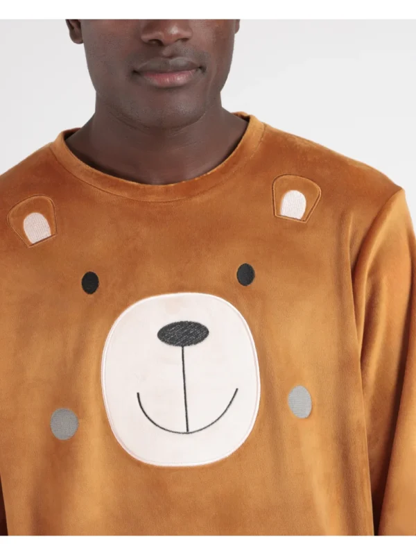 Pijama Manga Larga Velvet Bear Family Hombre MARRON