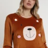 – Camiseta de tejido terciopelo. De color marrón. Con detalles bordados. Personalizada de la marca Admas.