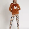 – Pijama de punto de algodón. de manga larga con cuello redondo y pantalón largo.