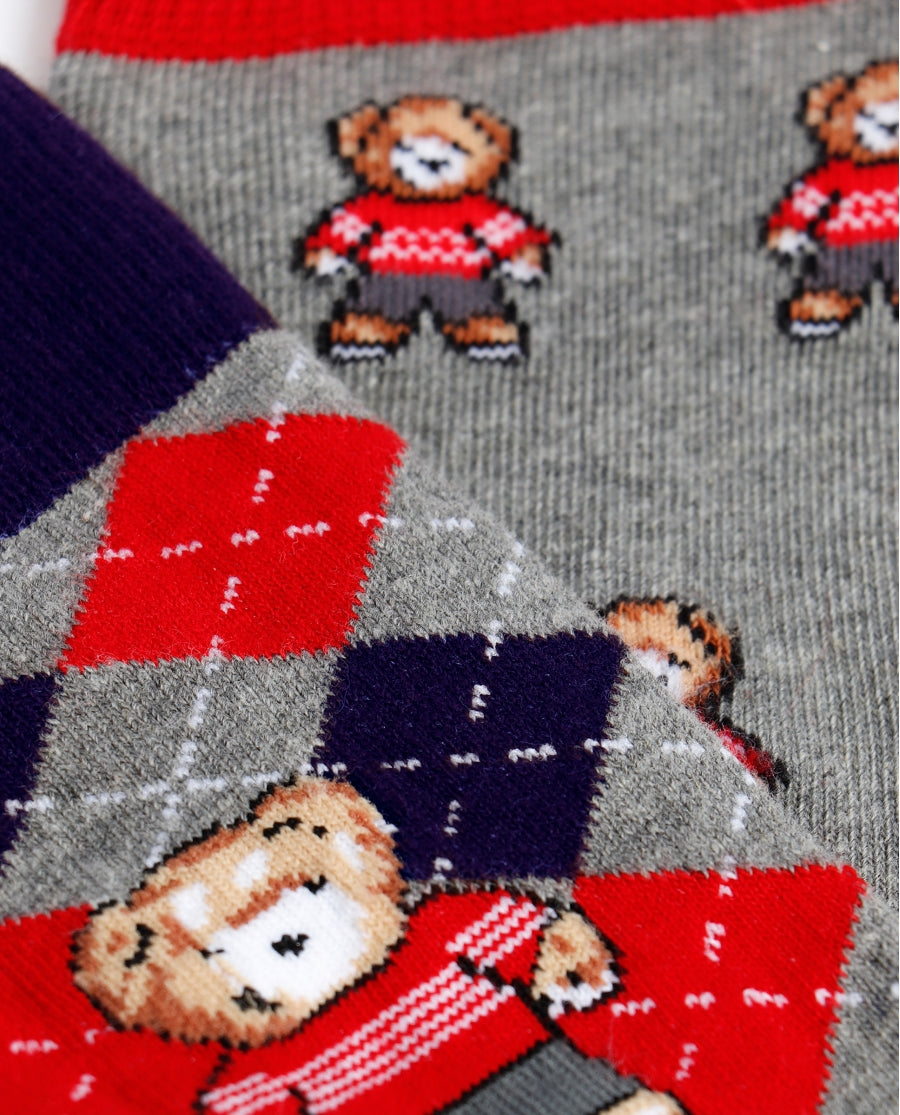 - Calcetín mediano de punto de algodón, en dos combinaciones de diseño.